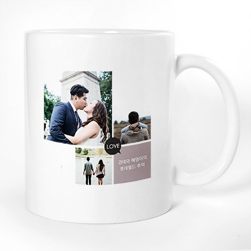 사진 4컷을 비대칭적으로 배치화여 심플미가 돋보이면서 단순함을 회피한 포토머그컵
