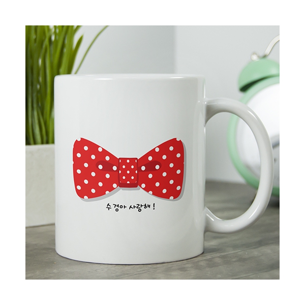 단순화 시킨 리본 및 콧수염을 프린트한 앙증맞은 머그컵 디자인