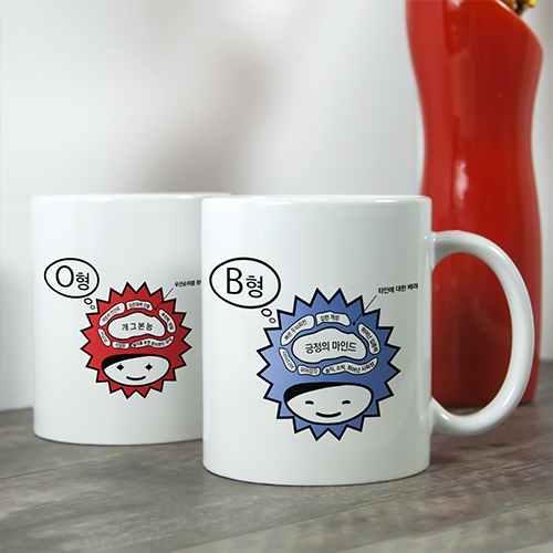남여별 혈액형별 성격을 코믹하게 그림으로 보여주는 머그컵