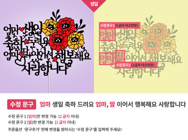 ○○ 생일 축하드려요 ○○, ○ 이어서 행복해요 > 생일토퍼