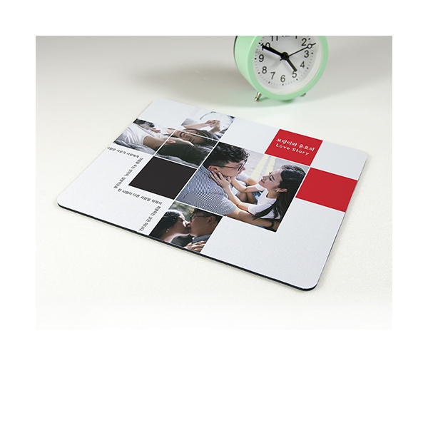 하얀색 바탕의 깔끔함이 돗보이며 밝은 빨강색으로 포인트를 강조한 디자인의 마우스패드