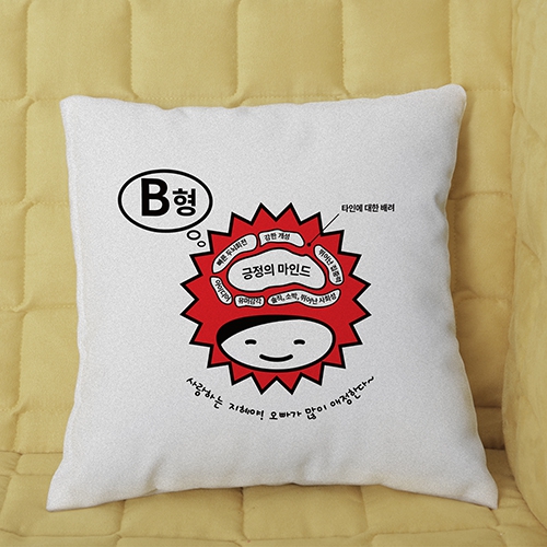 A형,B형,O형,AB형 등의 혈액형별 개성을 코믹하게 표현한 쿠션