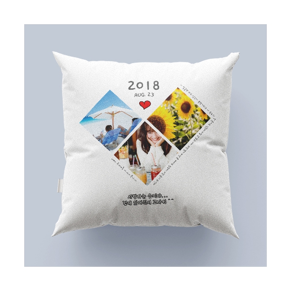 V자 형태로 3장의 사진을 배치한 아기자기한 쿠션