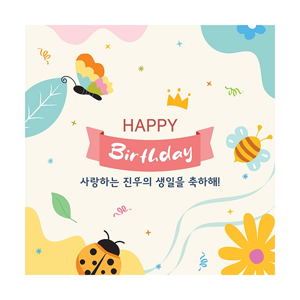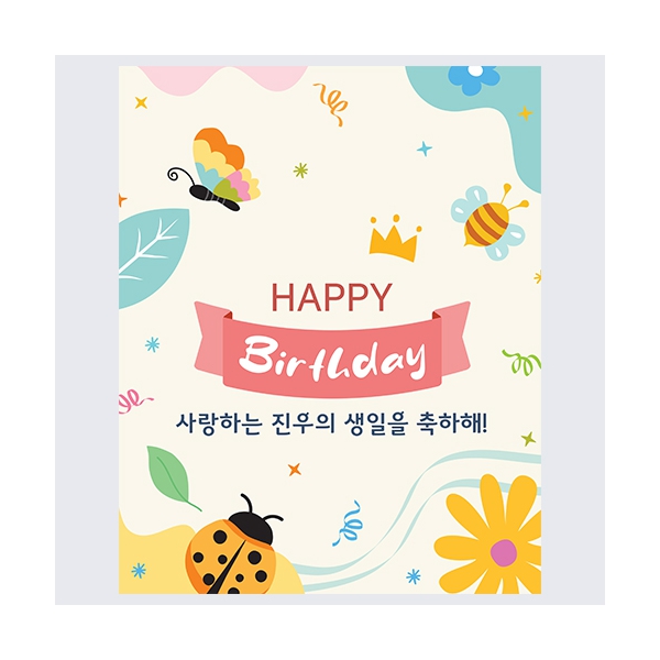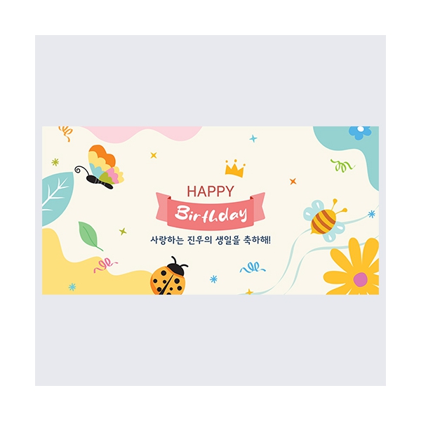 파스텔톤의 자연속을 곤충들이 날아다니는 귀여운 생일축하 이벤트 현수막